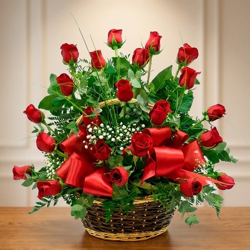 Never stop captivating that special being, send him this beautiful and majestic Scarlet Floral Arrangement in a wicker basket or similar, which contains